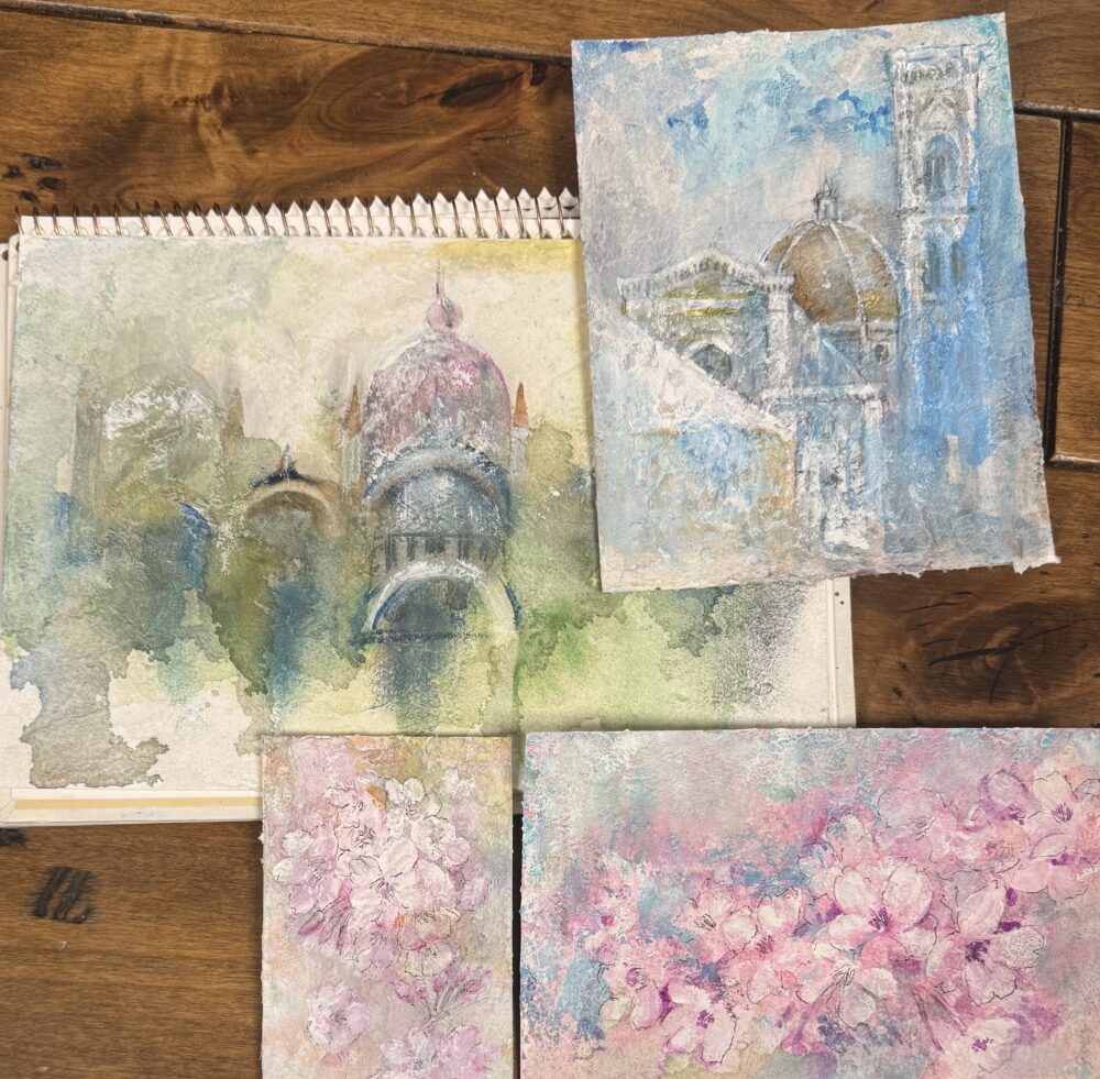 去年娘と一緒に行ったイタリアの風景や国内の風景、花を描いています。