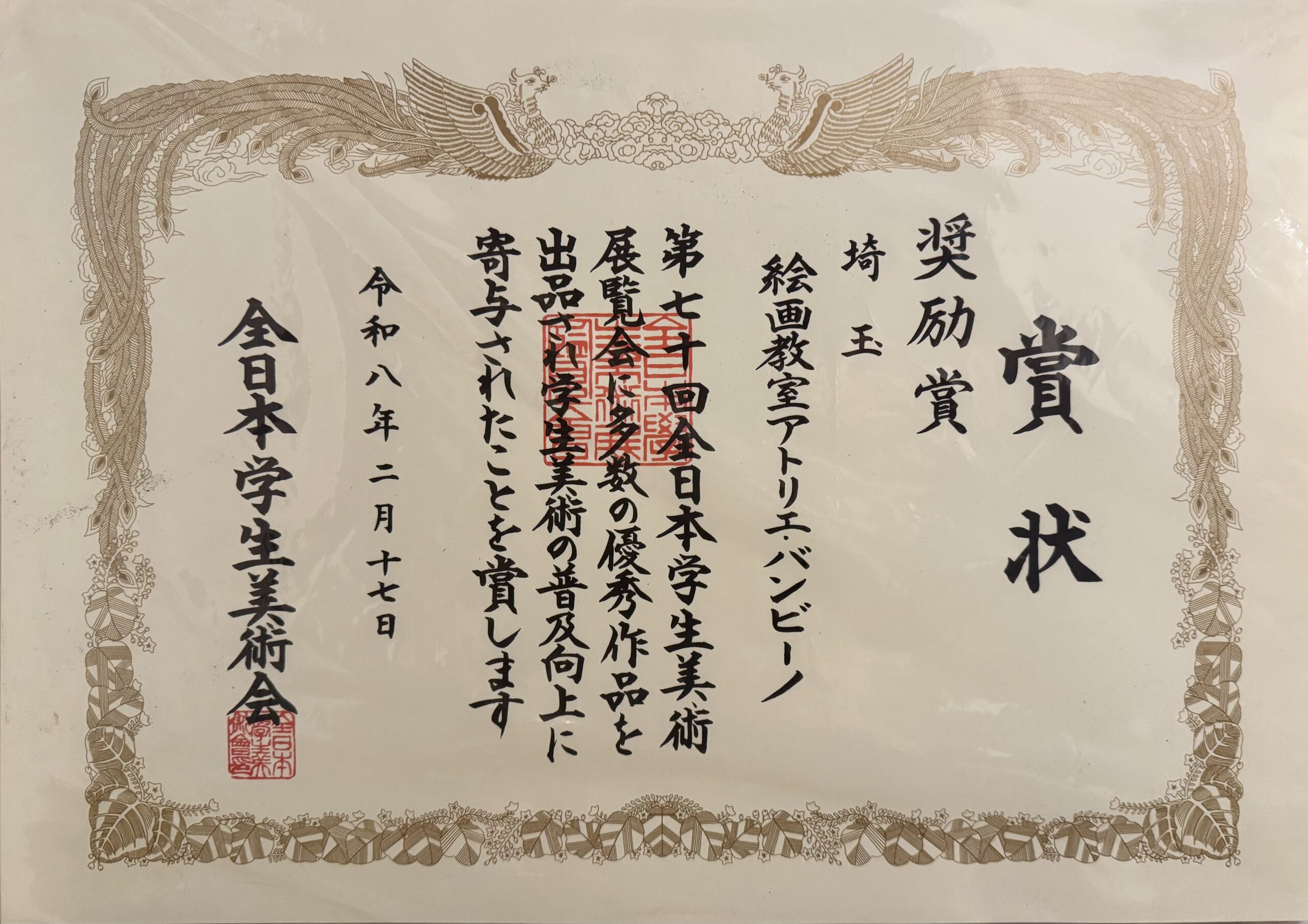 子どもクラス受賞情報ー第70回全日本学生美術展、奨励賞を受賞(2026年2月)